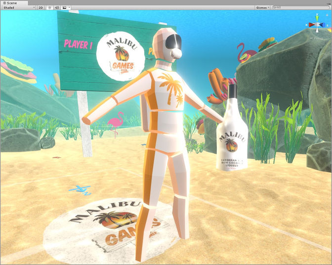 This project was a 2-player VR badminton game created for Malibu Rum. The game was showcased at location based entertainment marketing events across the country. I worked with RareFaction and Jaunt Studios on the following: